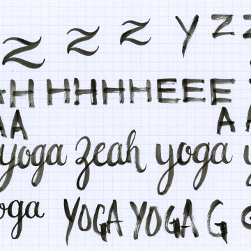 Leah’s a yoga personality with a dance background. I knew I needed to pump up the volume with color and style here. I thought some quick brush lettering and hand-drawn pattern work would fit the bill. This ended up to be one of those projects that just got shelved, but I think we were on our way to creating something pretty special.